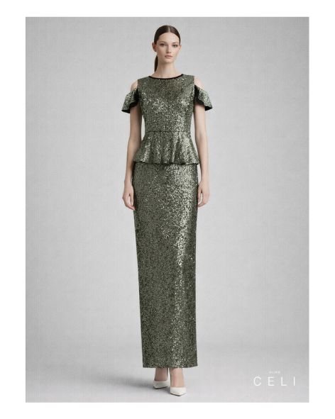 Langes Abendkleid • Peplum Kleid • Pailletten Kleid • Nachhaltige Mode • Recyceltes Polyester aus PET-Flaschen • ALINE CELI KLASSIKER • Bewusster Luxus • Europäische Qualität