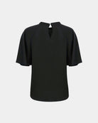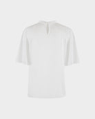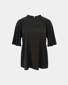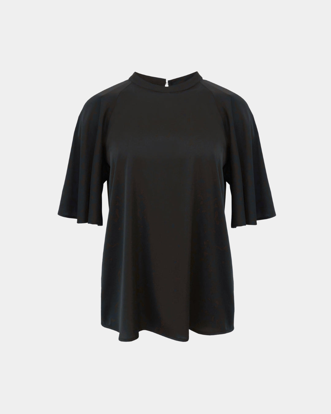 A blusa Léa é feita de poliéster reciclado derivado de garrafas PET e possui um acabamento acetinado com caimento fluido.