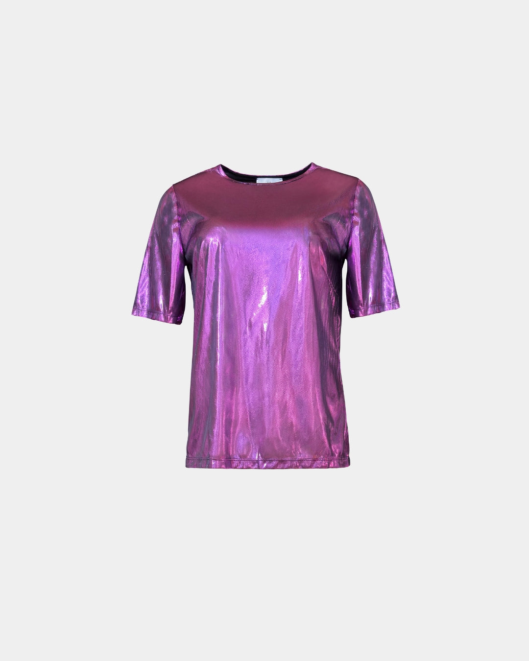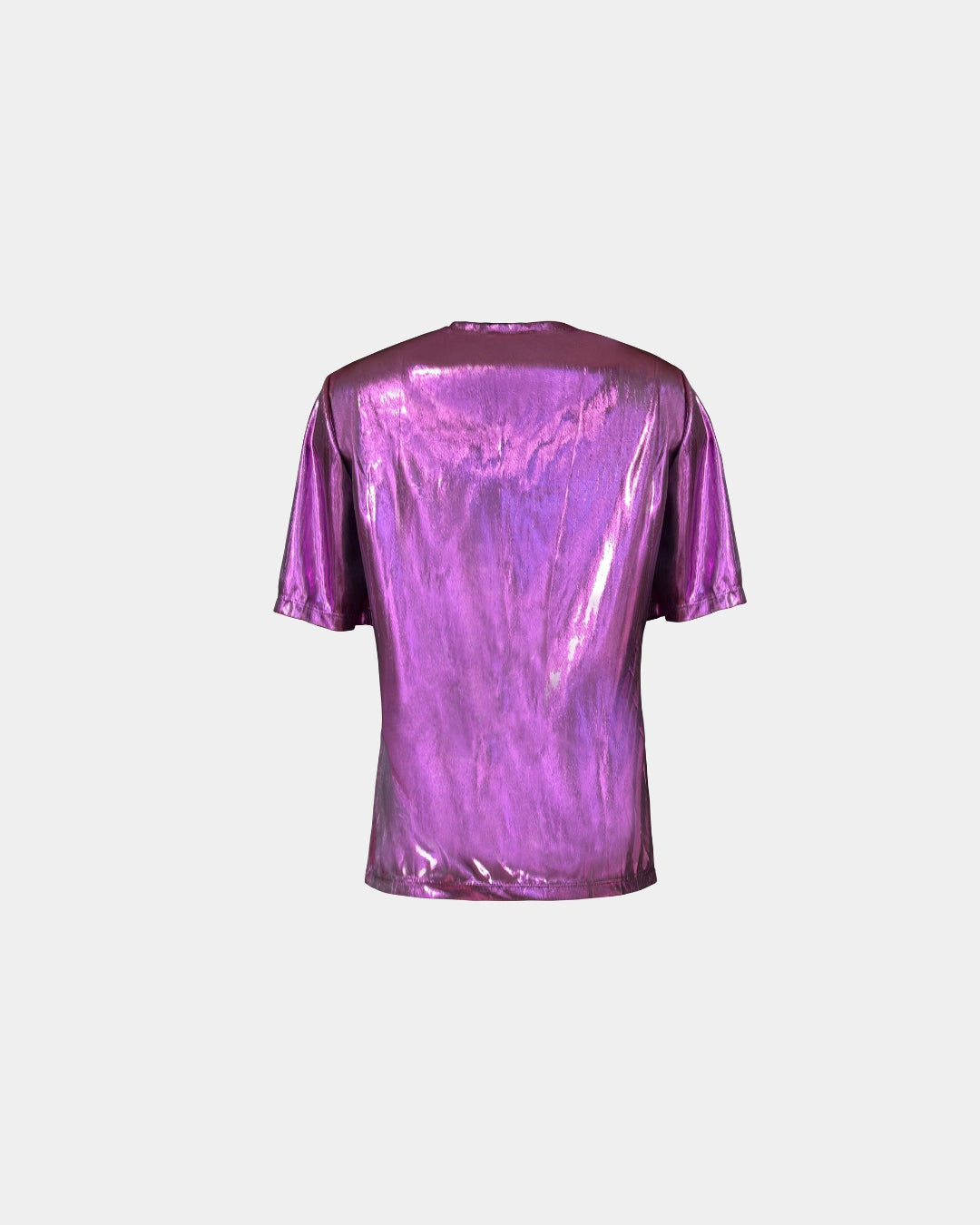 Die Metallic Bluse Silver Magic von ALINE CELI vereint moderne Strahlkraft mit klarer Linienführung und nachhaltiger Raffinesse.