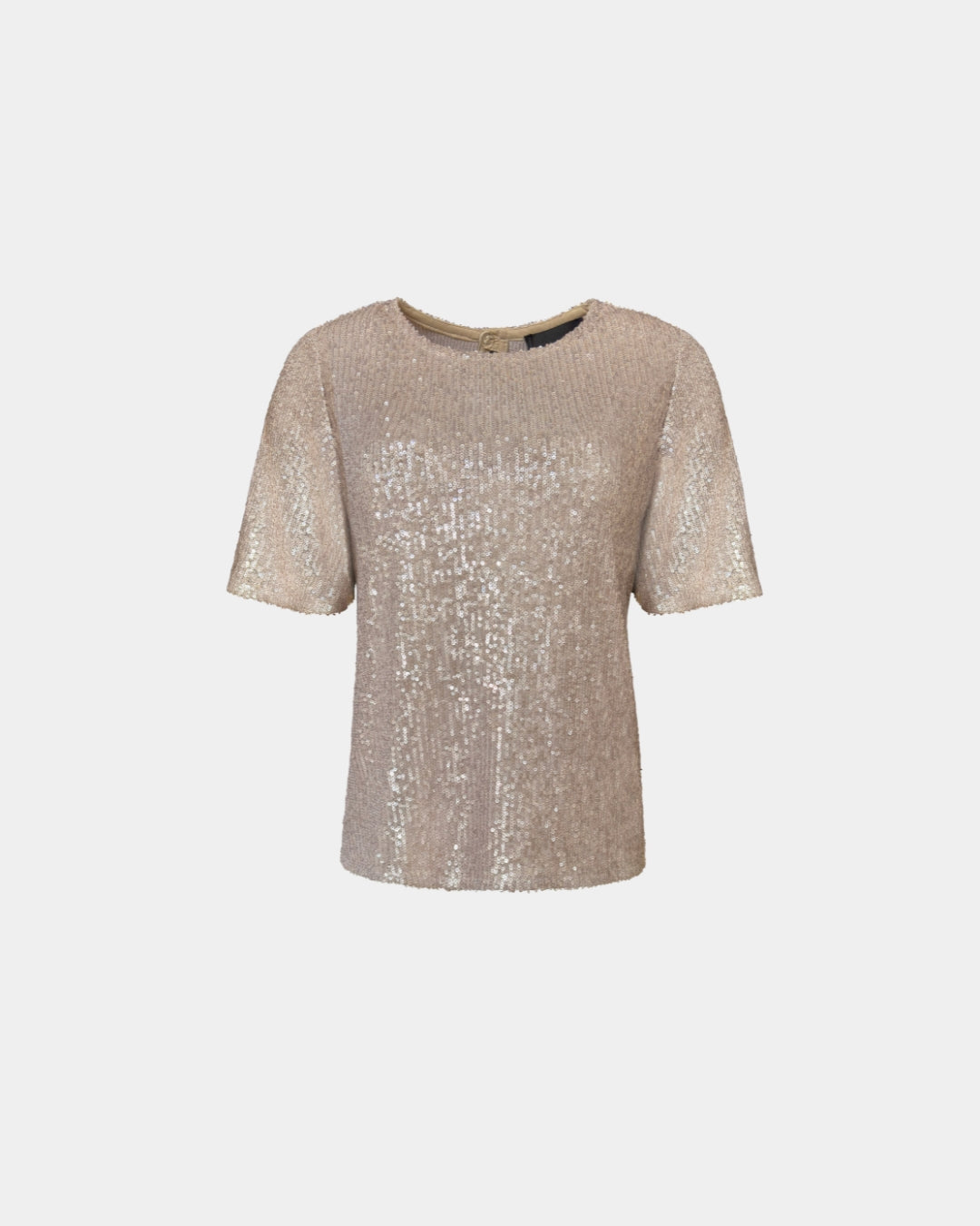 Die Paillettenbluse von ALINE CELI verkörpert das Gleichgewicht zwischen Licht und minimalistischer Raffinesse.