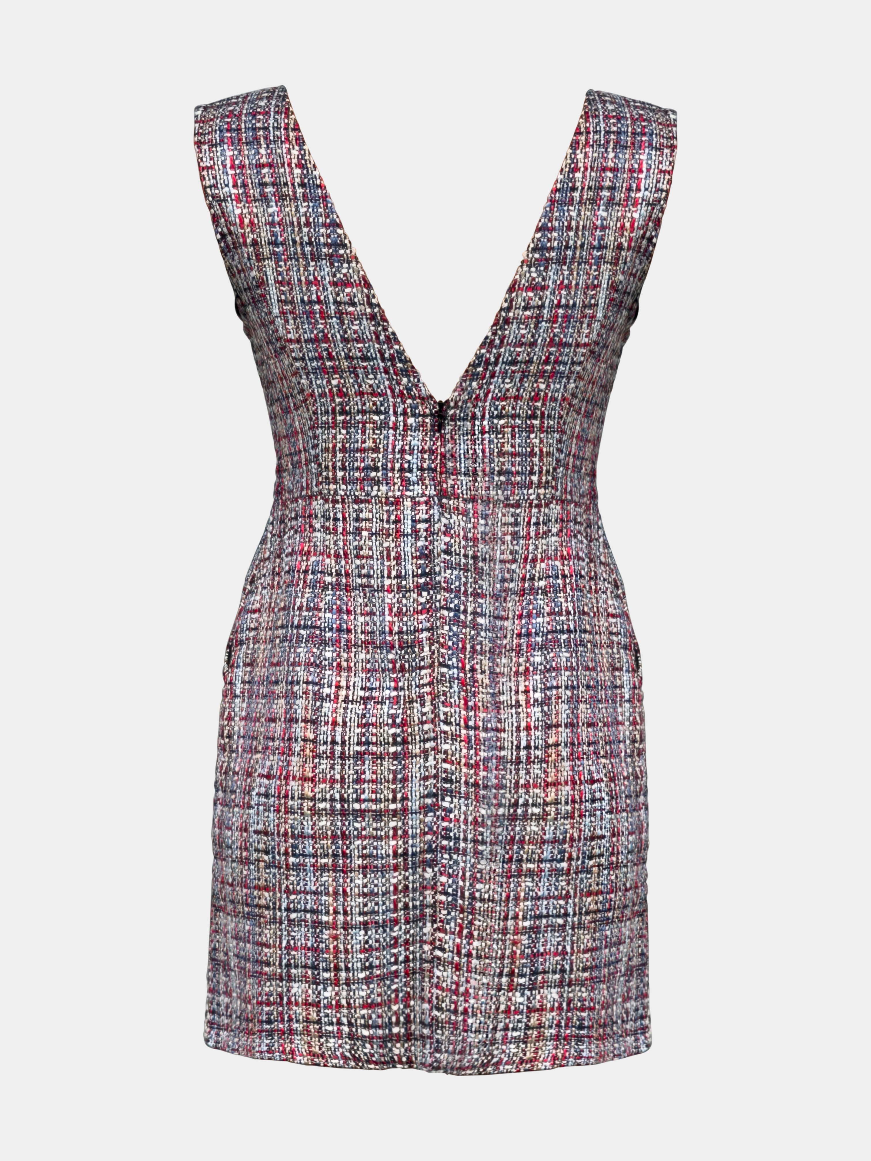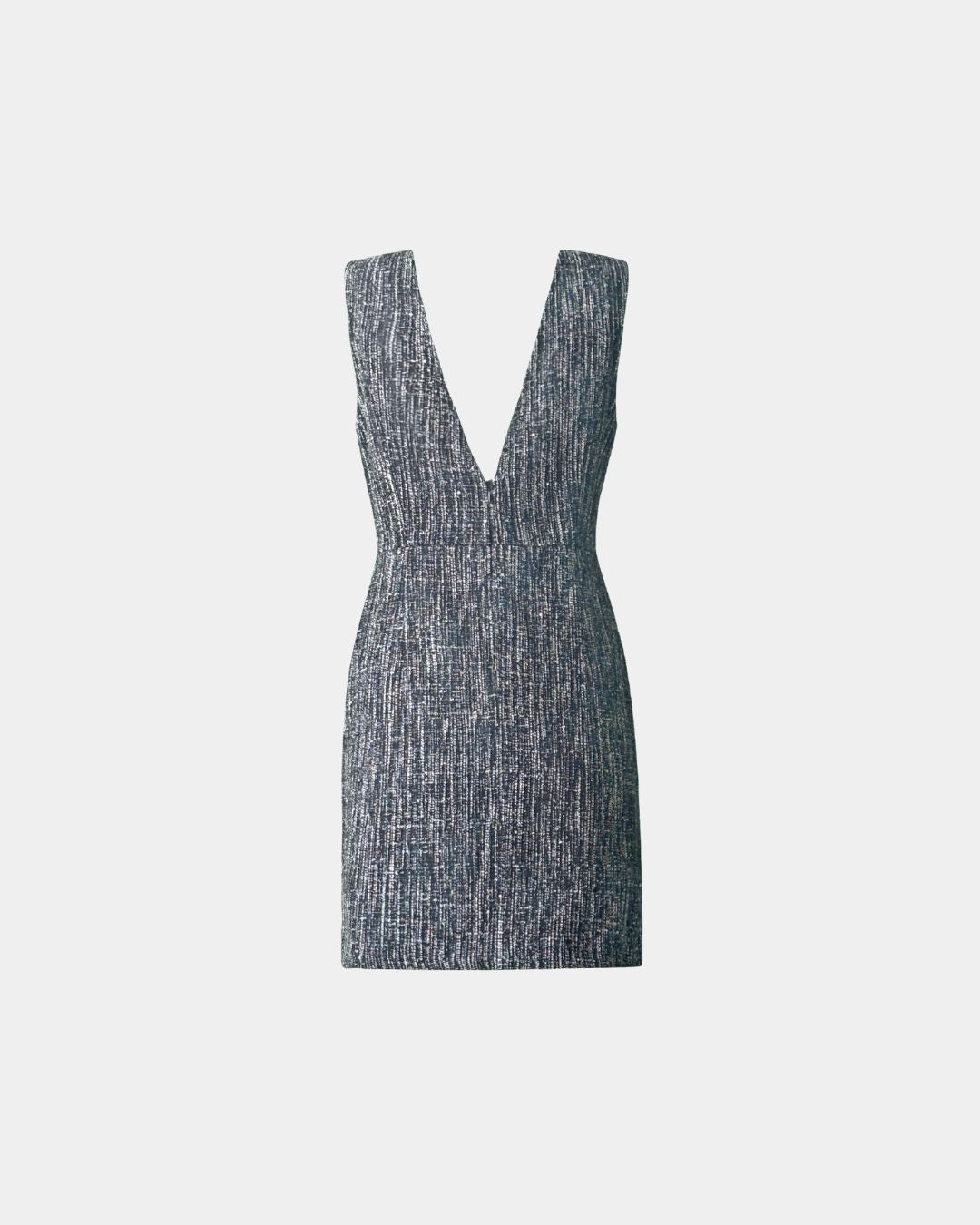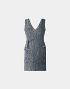 Das ALINE CELI Tweed Bouclé Couture Kleid verkörpert die perfekte Balance zwischen architektonischer Schneiderkunst und zeitgenössischer Weiblichkeit.