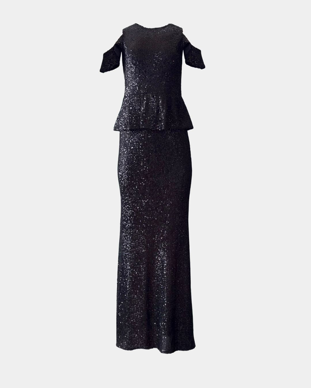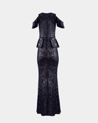 Langes Abendkleid • Peplum Kleid • Pailletten Kleid • Nachhaltige Mode • Recyceltes Polyester aus PET-Flaschen • ALINE CELI KLASSIKER • Bewusster Luxus • Europäische Qualität