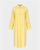 Mit seinem geraden, fließenden Schnitt, dem klassischen Kragen und der durchgehenden Knopfleiste vereint dieses Kleid Funktionalität und Raffinesse.