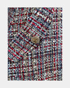 Gefertigt aus hochwertigem europäischem Bouclé-Tweed, kombiniert der Stoff verschiedenfarbige Garne und Strukturen, wodurch eine edle, dreidimensionale Textur entsteht – ein Symbol für handwerkliche Präzision und Raffinesse.