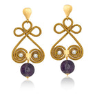Wunderschöne Ohrringe aus goldenem Gras mit Halbedelsteinen verziert und einem Verschluss aus recyceltem Kupfer.