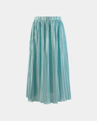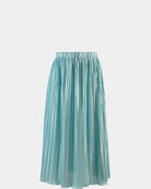 Gefertigt aus texturiertem Stoff, zeichnet sich der Rock durch seine feine Plissierung aus, die dem Design Tiefe und Dynamik verleiht. Der elastische Bund sorgt für Komfort und eine flexible Passform, während der Stoff weich fällt und sich bei jeder Bewegung elegant mitbewegt. Die lange, luftige Linie unterstreicht den femininen und modernen Charakter der Silhouette.