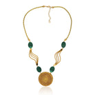 Wunderschöne Halskette aus goldenem Gras mit Halbedelsteinen verziert und einem Verschluss aus recyceltem Kupfer.