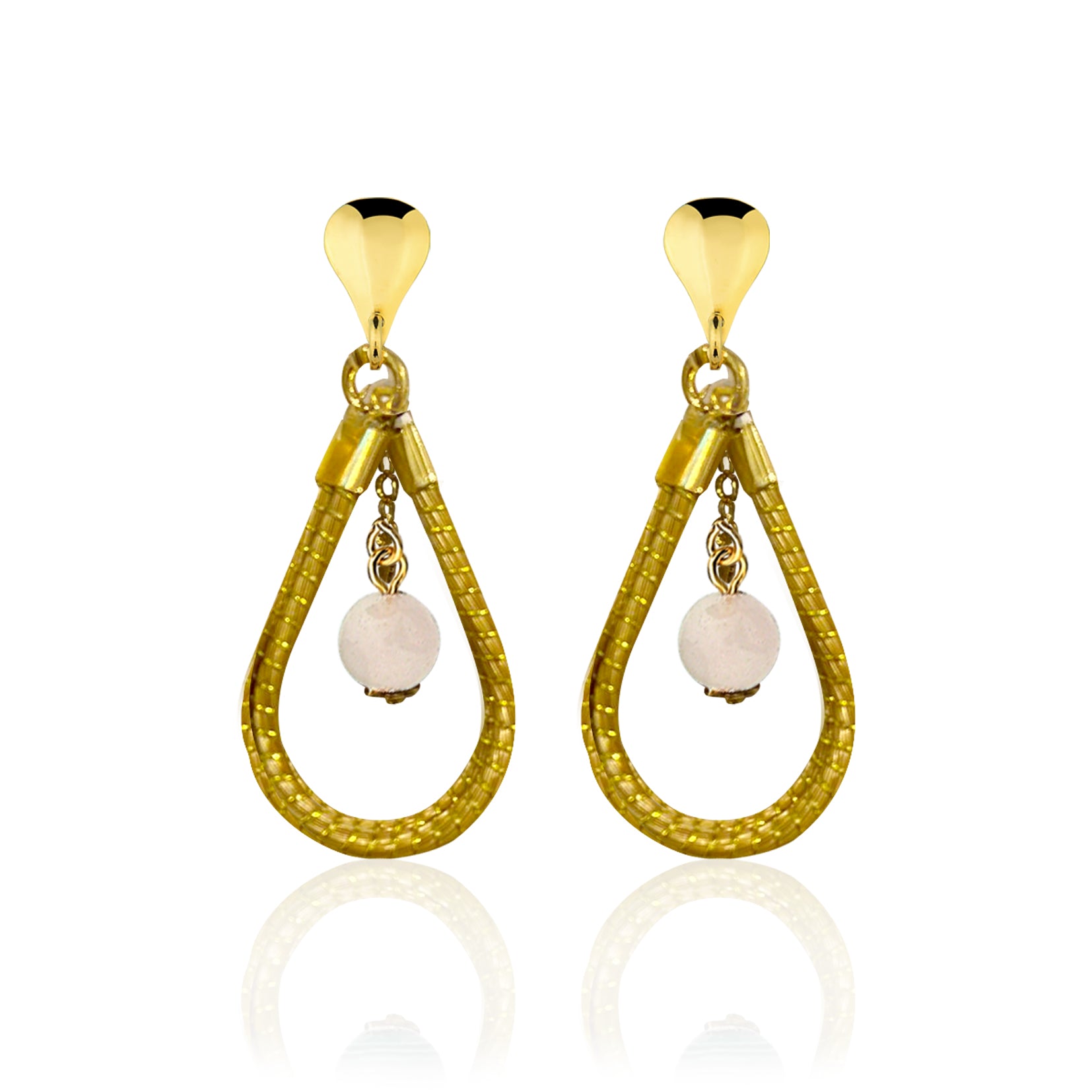 Wunderschöne Ohrringe aus goldenem Gras mit Halbedelsteinen verziert und einem Verschluss aus recyceltem Kupfer.