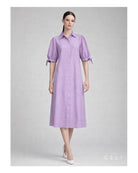 Leinenkleid Lavendel, lilafarbenes Kleid Damen, A-Linie Kleid, Shirtdress Leinen, nachhaltige Mode Berlin, Sommerkleid, ALINE CELI